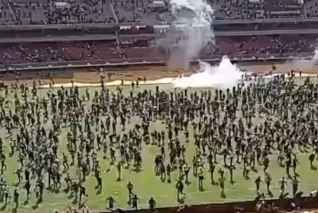 10月16日,肯尼亚内罗毕,数千人冲进体育场悼念肯尼亚已故前总理奥廷加,警方投掷催泪瓦斯驱散。
