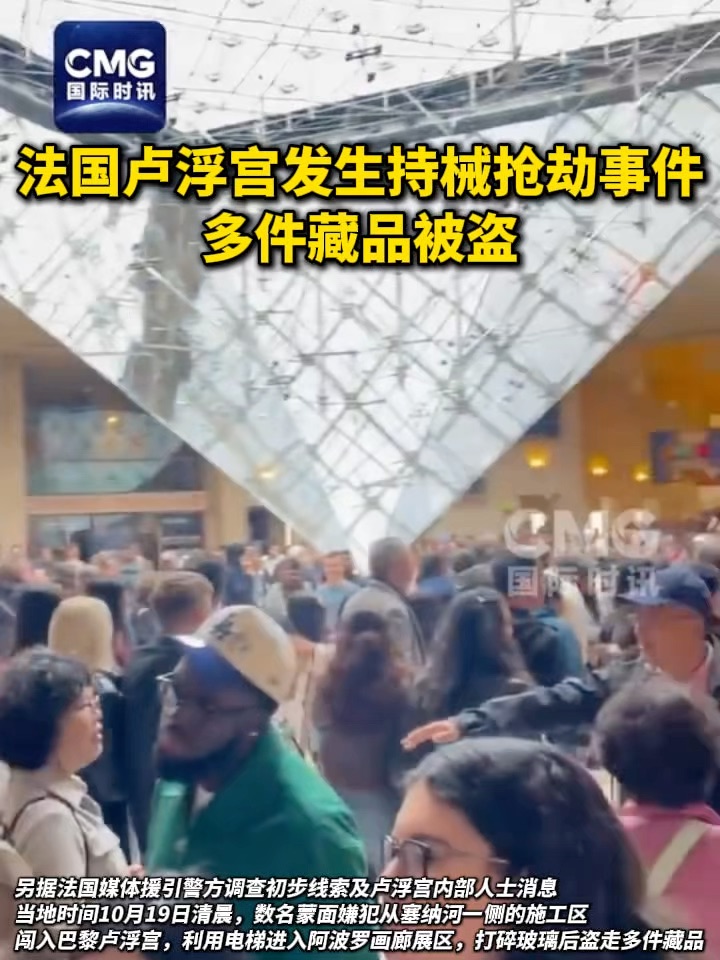 据央视新闻消息,法国文化部长达蒂当地时间19日表示,当天早上巴黎卢浮宫开馆时发生一起持械抢劫事件,暂无人员受伤报告。她已赶赴现场,与博物馆及警方人员一同了解情况,目前调查正在进行中。卢浮宫博物馆发布消息称,由于特殊原因,博物馆今日将暂停对外开放。