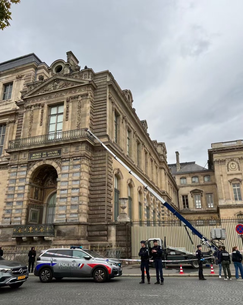 此外,有多位中国游客在阿波罗画廊外看到可能是窃贼遗留下来的升降设备,这里的现场已经被法国警方控制。据一位在附近工作的中国人称,这个装在一辆小货车上的升降设备前几天就已经停在这里了。