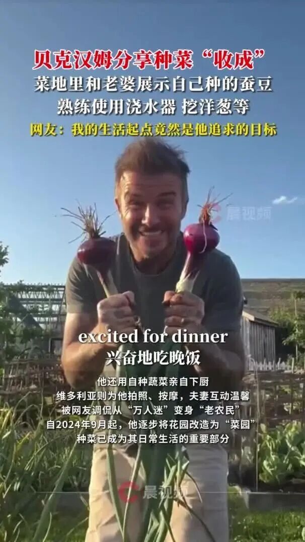 他还用自种蔬菜亲自下厨,维多利亚则为他拍照、按摩,夫妻互动温馨。被网友调侃从“万人迷”变身“老农民”,自2024年9月起,他逐步将花园改造为“菜园”,种菜已成为其日常生活的重要部分。