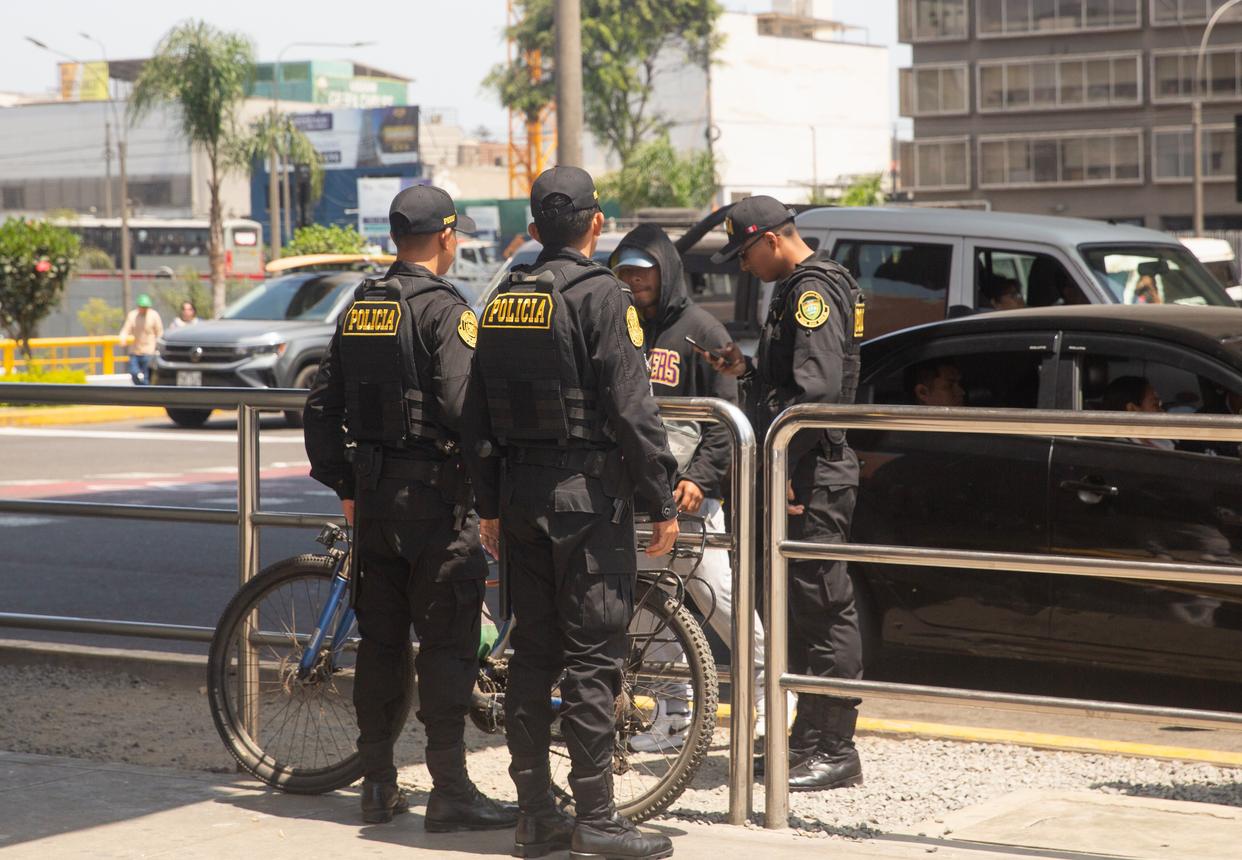 10月22日,在秘鲁首都利马,警察要求一名行人出示身份证件。新华社发(玛丽安娜·巴索摄)