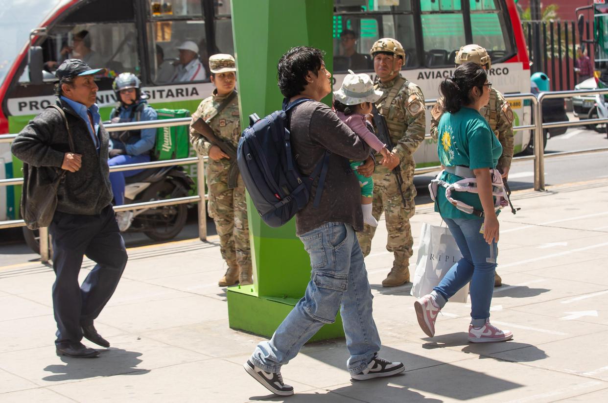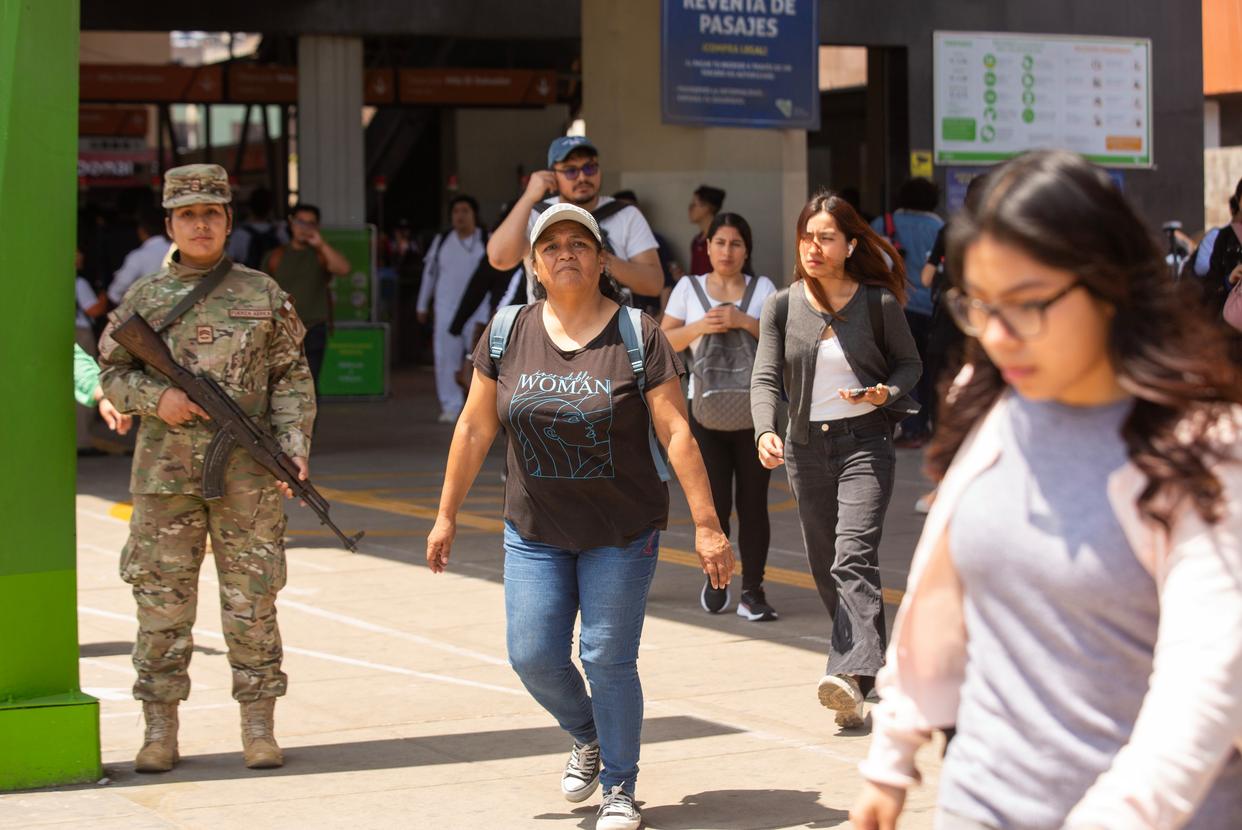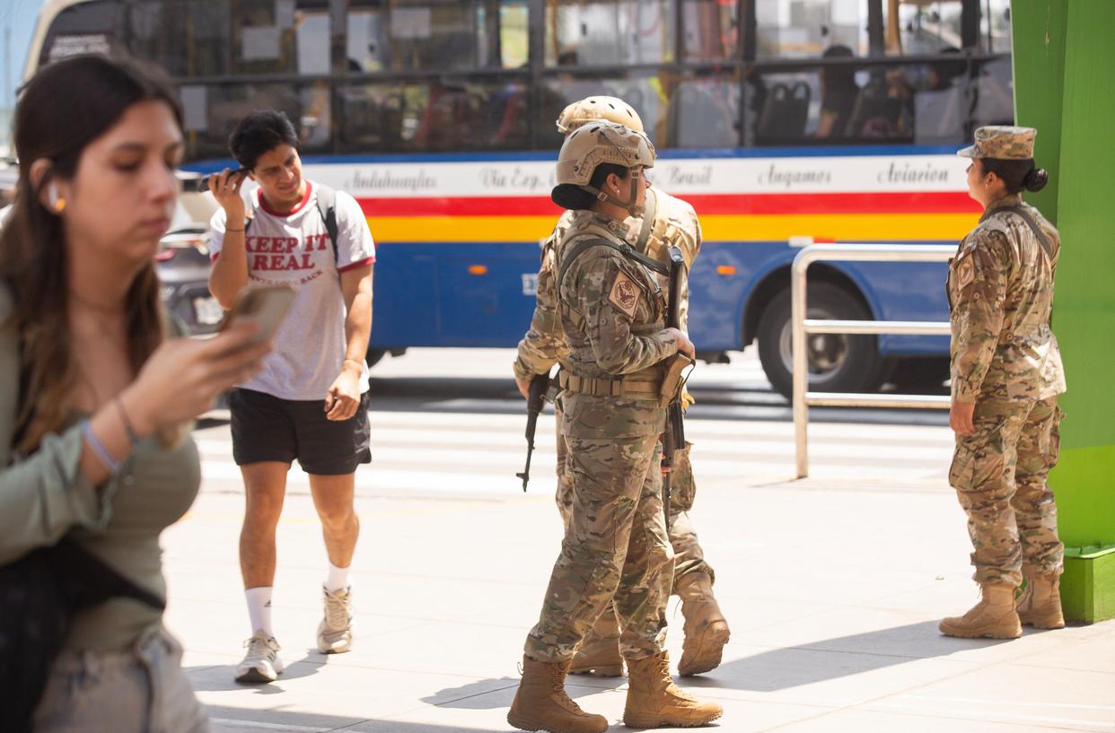 10月22日,在秘鲁首都利马,军人正在巡逻。新华社发(玛丽安娜·巴索摄)