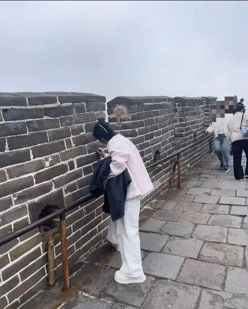 据拍摄照片的网友介绍,24日中午,她在八达岭长城好汉坡附近,看到一名身着粉色上衣的女子在城墙上刻字。“我上前对她进行了劝告提醒,但没有效果。”该网友告诉记者,长城刻字本不应该,提醒之后该女子依然我行我素,她见此情形非常气愤,“必须投诉,游玩的好心情都被破坏了。”