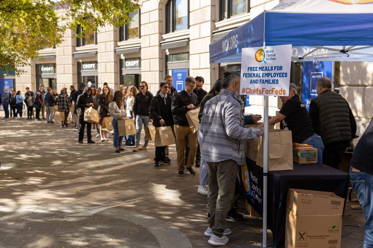 11月5日,在美国首都华盛顿,联邦雇员排队领取免费食物。新华社记者 胡友松 摄