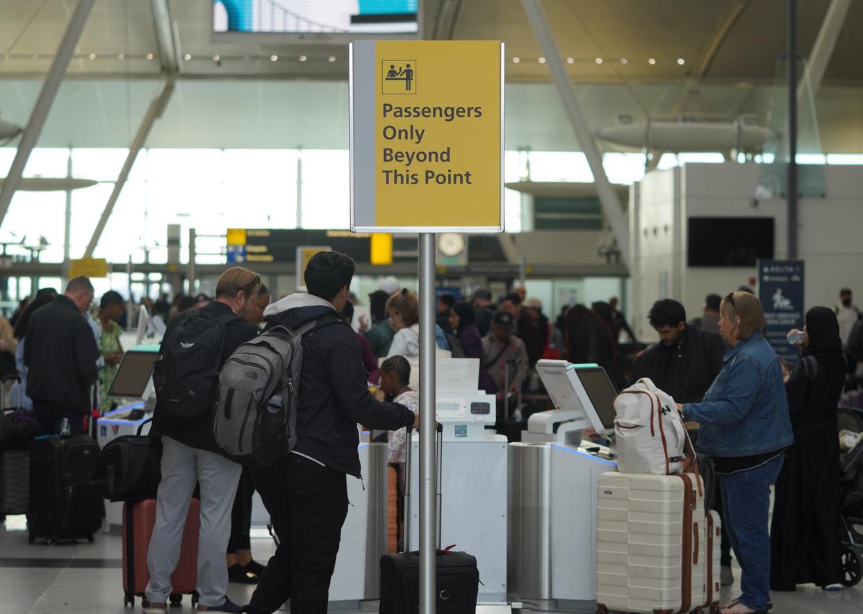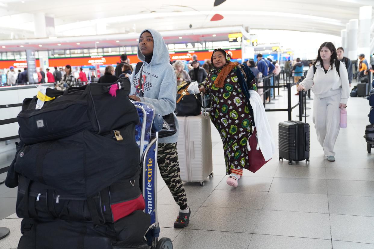 11月5日,在美国纽约肯尼迪国际机场,乘客排队值机。新华社记者张凤国摄