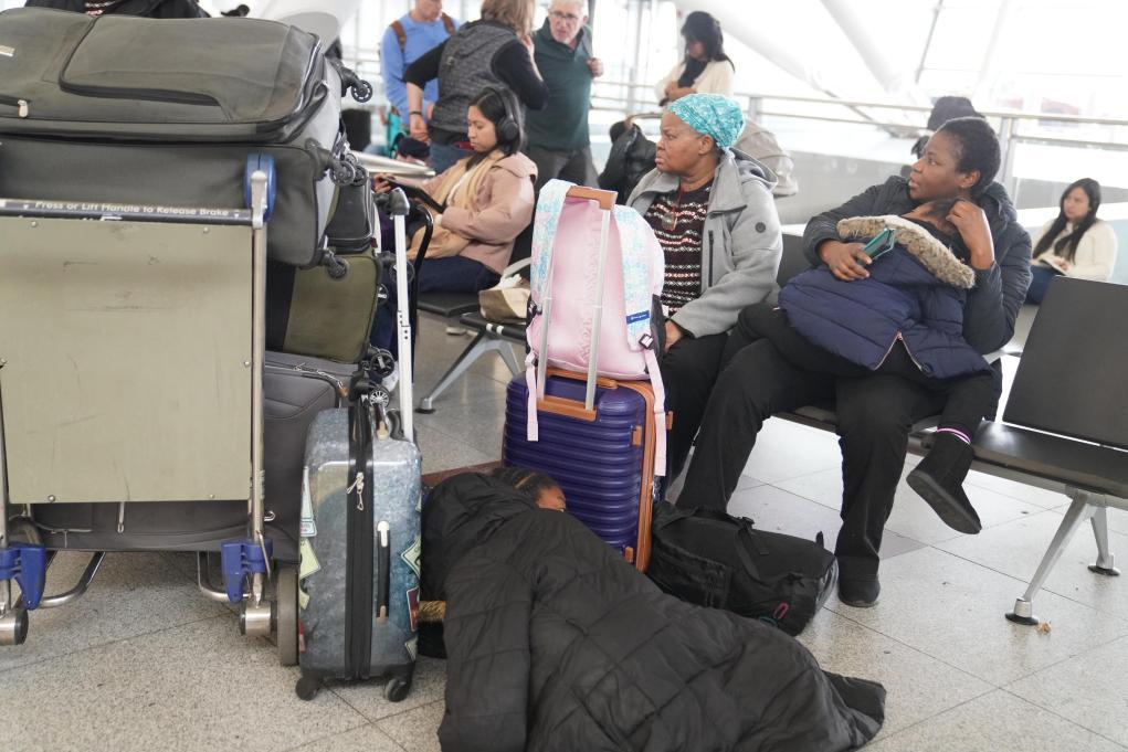 11月5日,在美国纽约肯尼迪国际机场,乘客等候值机。新华社记者张凤国摄