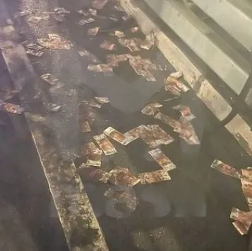 事故发生在凌晨1点30分,这条繁忙的高速公路瞬间变成惨烈现场,车辆燃烧并伴随爆炸。现场照片显示,现金散落在高速路上,增添了事故的震撼感。