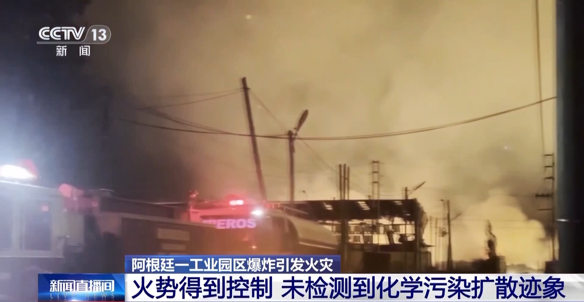 阿根廷布宜诺斯艾利斯省埃塞萨市一工业园区14日晚发生爆炸,爆炸引起火灾并产生大量烟雾。据有关部门15日通报,经过超13小时扑救,火势已得到控制。事件导致至少20人受伤。目前未检测到空气中化学污染扩散迹象,也未接到居民中毒症状报告。
