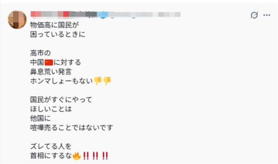 日本民众还发帖称,希望日本自民党高层为高市的不当发言承担责任。
