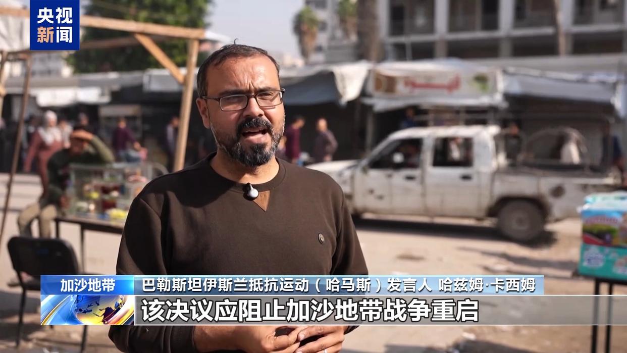 总台报道员 奥萨马·阿什希:我们现在在加沙城的街头,来了解当地民众对联合国安理会通过美国提出的“20点计划”的看法。
