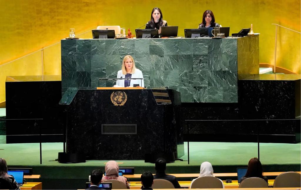 马拉戈向联合国会员国阐释了米兰-科尔蒂纳冬奥会的核心愿景——“和谐(Armonia)”,并表示这一理念深深植根于意大利的文化与历史。