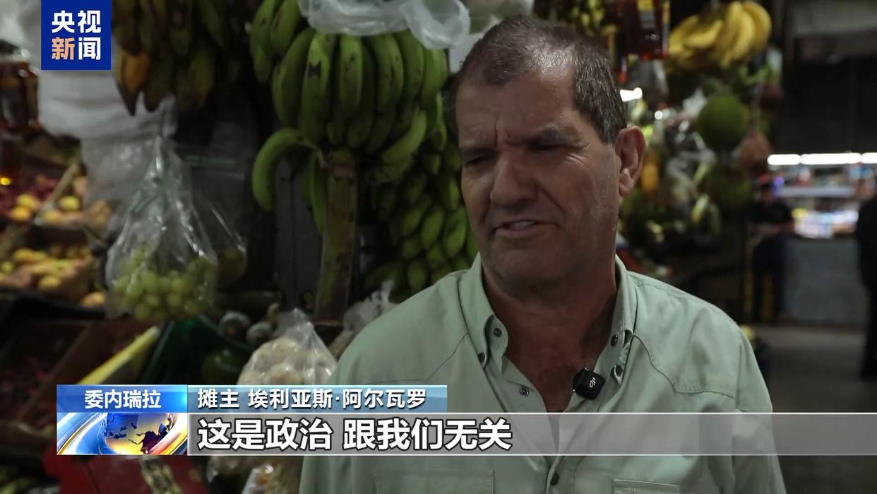 摊主 埃利亚斯·阿尔瓦罗:这是政治,跟我们无关,我们只想继续工作,那个帝国(美国)回自己家吧。不,这里没有人害怕,一切都很好。