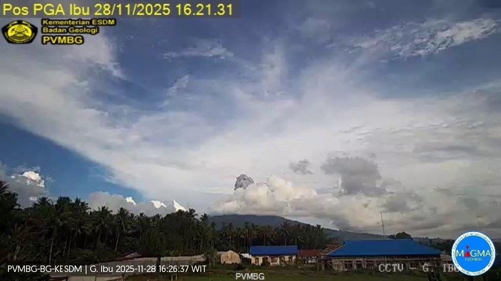 据印尼火山地质减灾中心(PVMBG)消息, 当地时间11月28日16时20分,印尼北马鲁古省伊布火山发生喷发。火山灰柱高约800米,喷发持续时间为74秒。(总台记者 李琳)