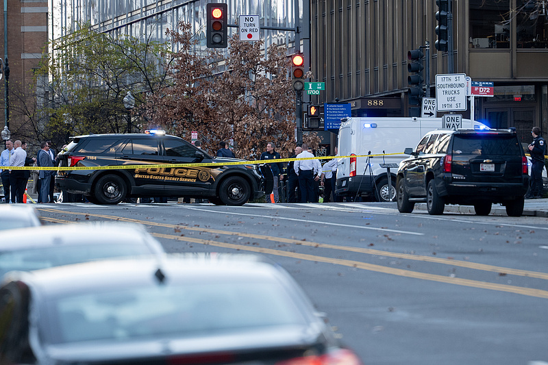 △当地时间11月26日,美国华盛顿特区,执法人员封锁了枪击案现场。