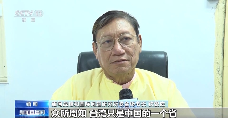 缅甸战略和国际问题研究所联合秘书长 钦貌佐:众所周知,台湾只是中国的一个省,台湾问题完全是中国内政,一个中国原则已被世界各国承认和接受。日本有些政客对过去的错误毫无悔意,这是要重蹈覆辙。
