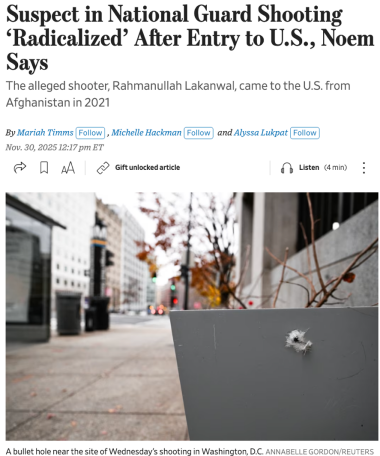 △《华尔街日报》称,诺姆表示,枪击国民警卫队员的嫌疑人很可能是在进入美国后才变得观点激进,而他们也将调查嫌疑人接触的所有人员。