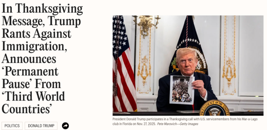 △《时代》杂志报道,美国总统特朗普在社交媒体发表的感恩节致辞中,严厉抨击了美国的5300万外籍人口,包括合法移民。