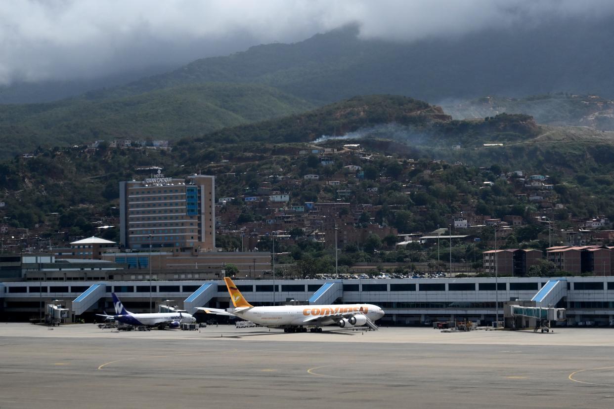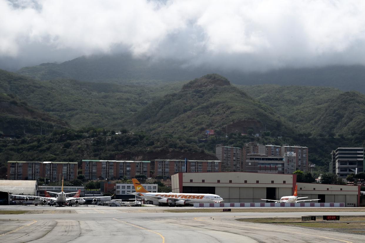 12月1日,在委内瑞拉首都加拉加斯附近的迈克蒂亚西蒙·玻利瓦尔国际机场,委内瑞拉、哥伦比亚、巴拿马的航空公司客机停靠在停机坪上。新华社记者 李木子 摄