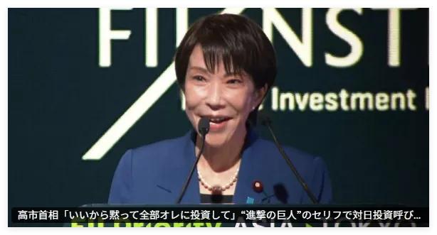 据多家日本媒体报道,本周一,日本首相高市早苗在东京参加了一个由沙特阿拉伯的机构主办的国际金融会议。期间,似乎是为了用一种更加“生动”的方式吸引外国投资者来投资日本,高市早苗便在发言时引用了日本知名动漫《进击的巨人》中的一句话。