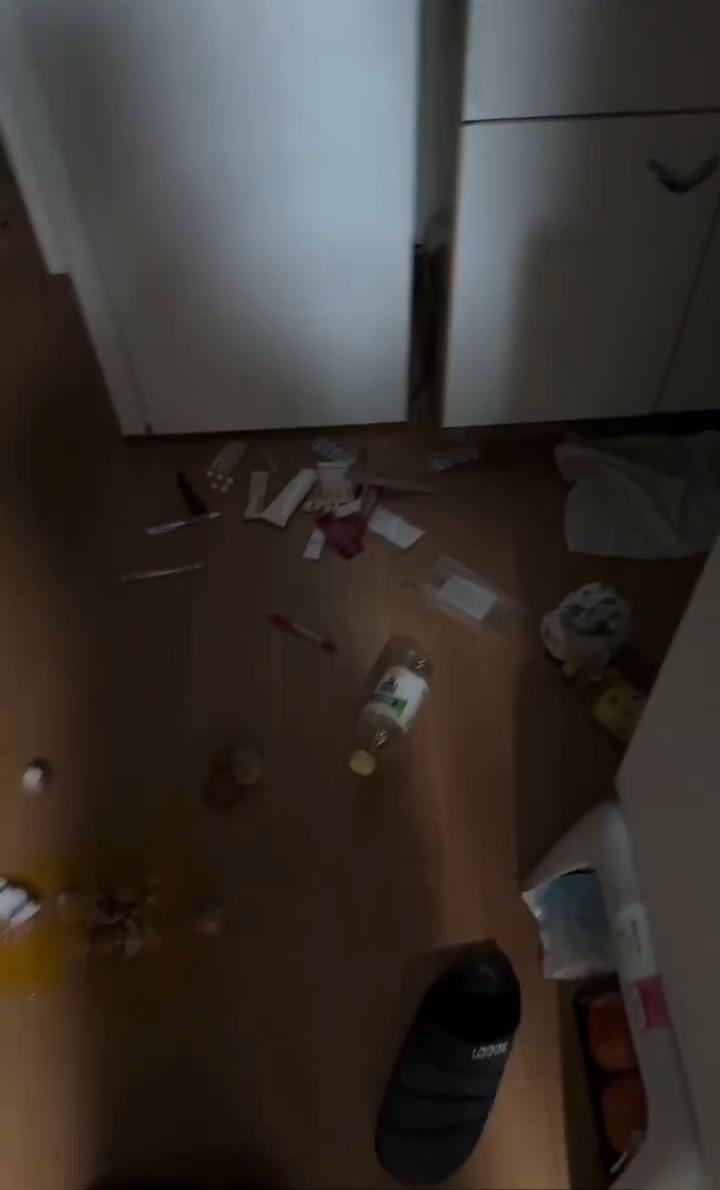 地震发生后,徐女士家东西散落了一地