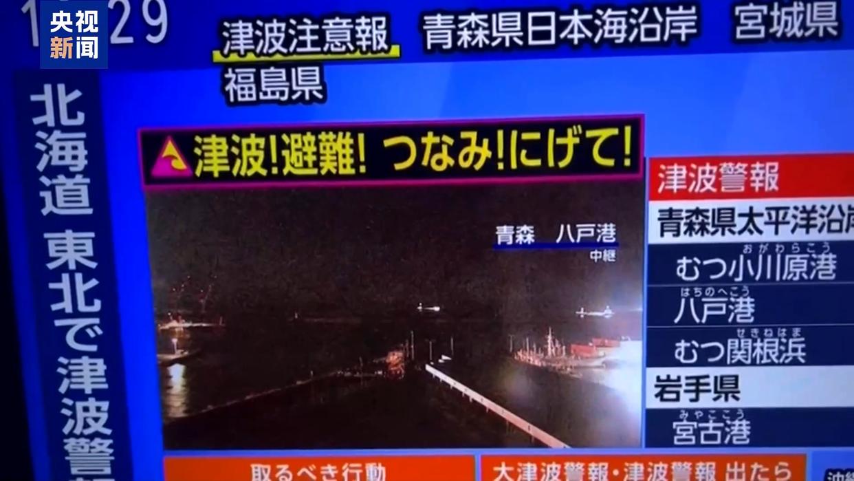 总台记者 何欣蕾:地震发生后,东京等关东地区有明显的震感。当时我感觉到我坐的椅子有持续的轻微震动,大约持续了20几秒。第一次地震发生后不久,当地时间23时33分,青森县东部近海又发生了5.6级地震。日本气象厅已经发布了海啸警报和海啸的注意报。