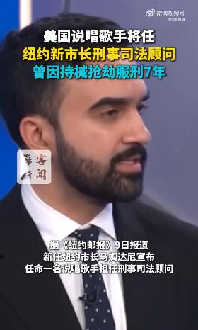 据《纽约邮报》9日报道,新任纽约市长马姆达尼宣布任命一名说唱歌手担任刑事司法顾问。报道称,这名说唱歌手名叫迈索恩·林恩,现年49岁。他曾在1997年和1998年参与了两起持枪抢劫案,1999年被处以7年监禁。