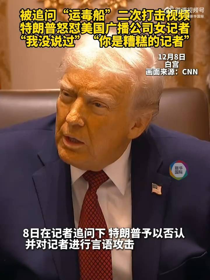 据新华社消息,美国总统特朗普8日被一名记者追问何时公布打击一艘“运毒船”的完整视频时,当即发飙,怒斥这名记者“讨厌”“糟糕透顶”。