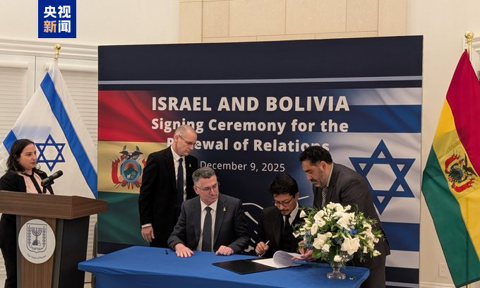 当地时间9日,玻利维亚外交部长阿拉马约与以色列外交部长萨尔在美国华盛顿签署协议,恢复两国外交关系。