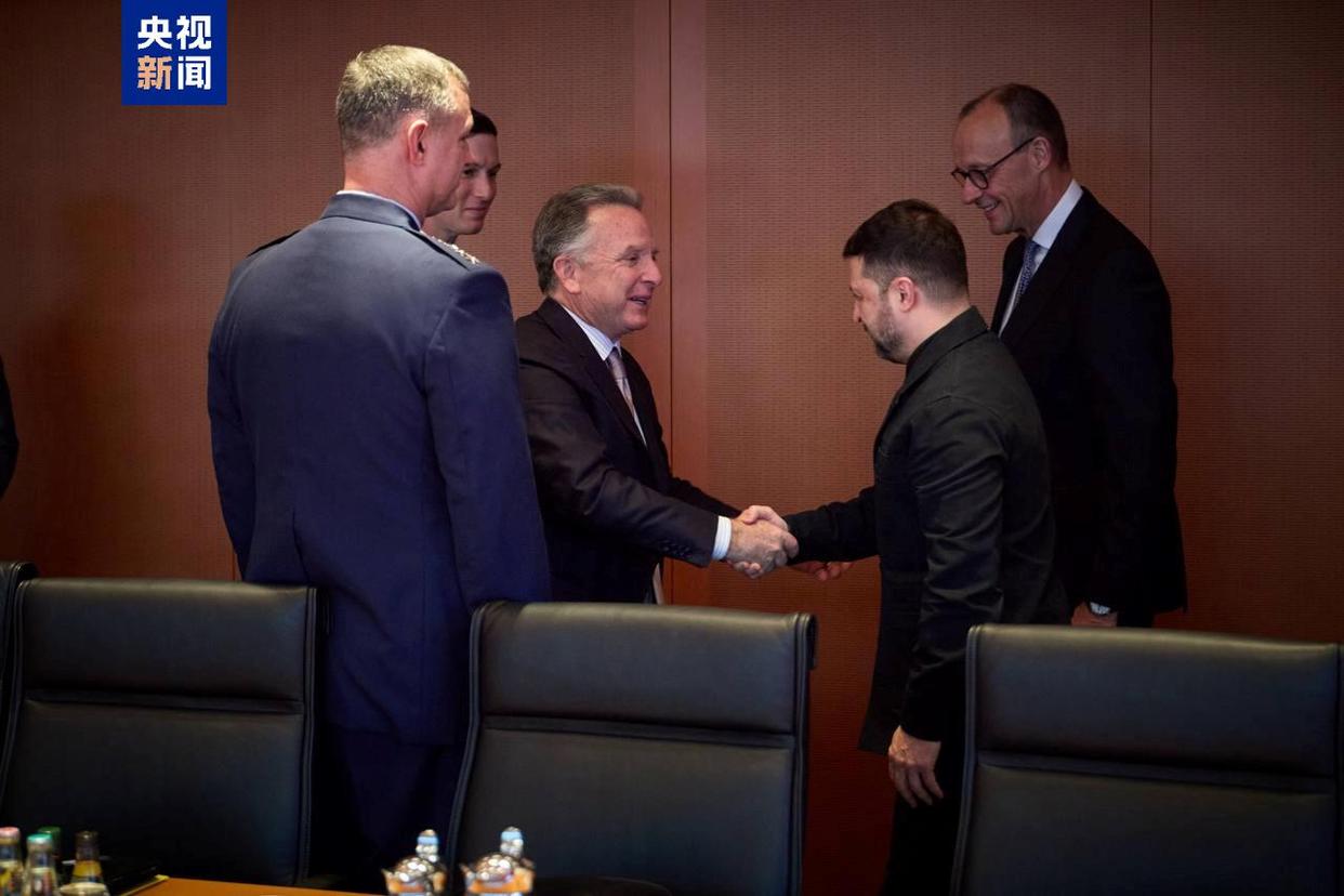 当地时间14日下午,乌克兰总统泽连斯基与美国总统特使威特科夫、德国总理默茨在德国总理府开始会谈。