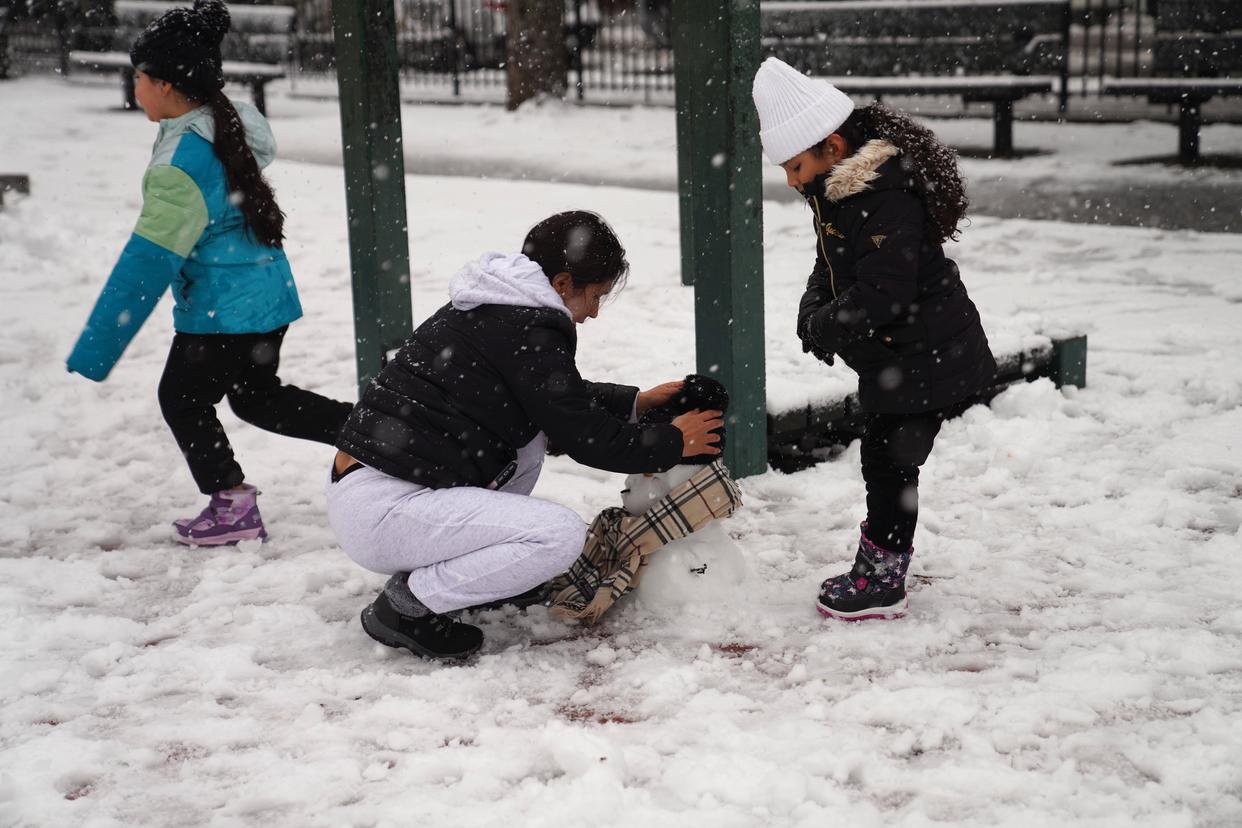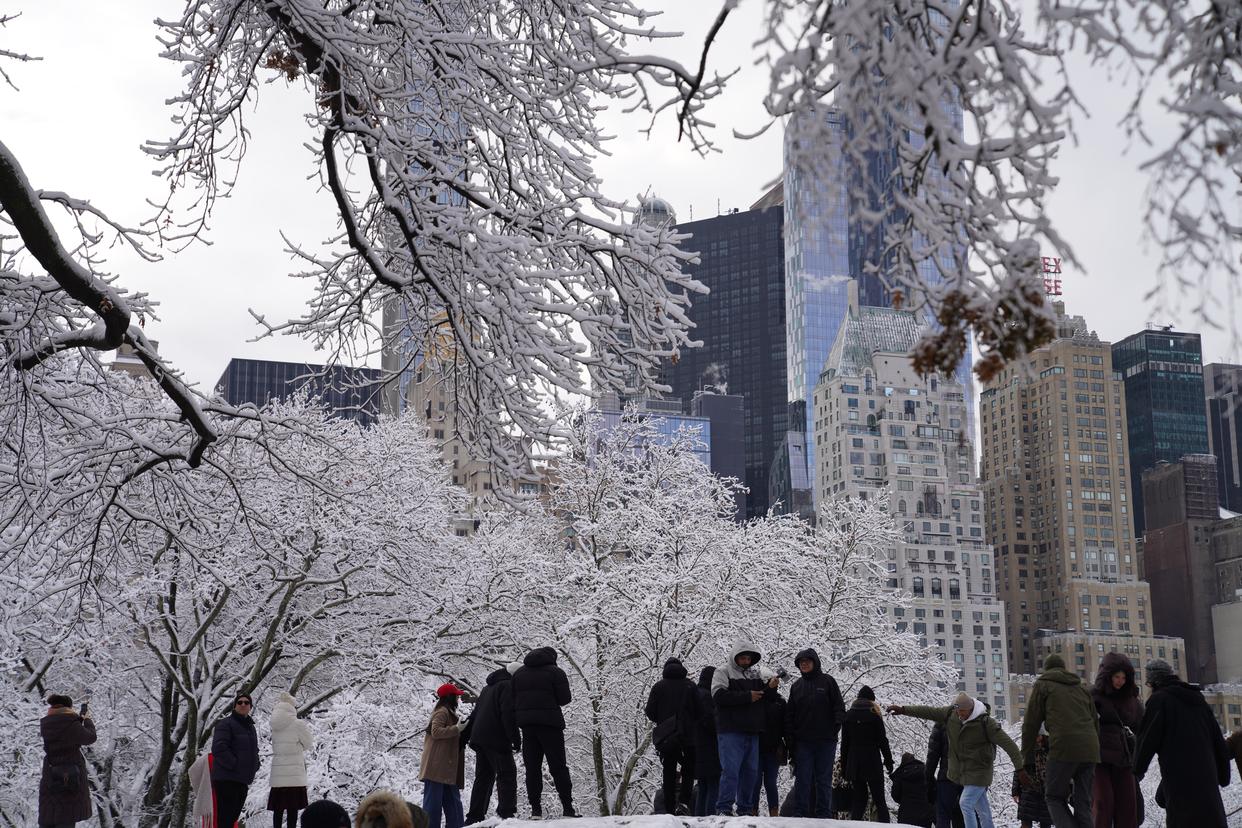 当日,美国纽约迎来今年入冬以来的首场降雪。