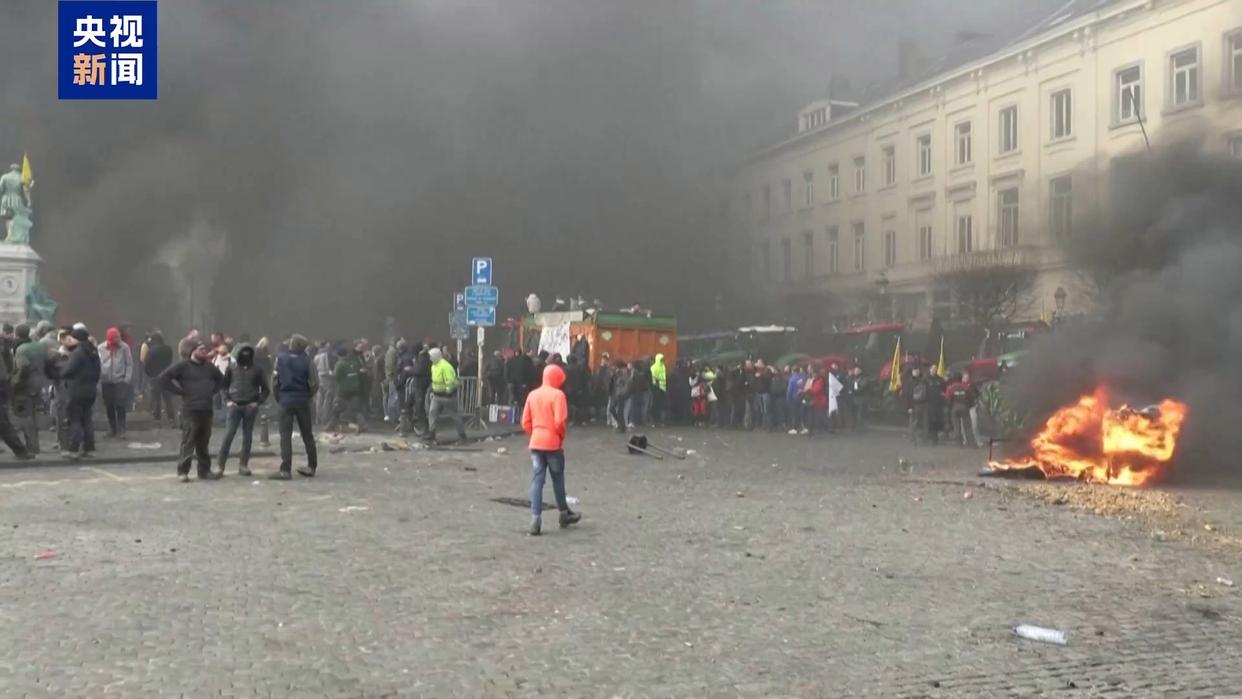 总台记者 顾鑫:在位于布鲁塞尔市中心的卢森堡广场,我们可以看到大量来自欧洲各地的农民驾驶拖拉机来到这里,抗议欧盟的相关政策。在现场他们燃烧垃圾并向警察投掷鞭炮和杂物,警方使用高压水枪和催泪瓦斯进行回应。整个现场弥漫着刺鼻的气味。