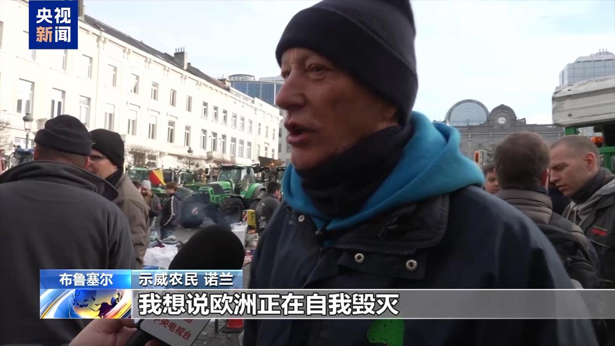 总台记者 顾鑫:自俄乌冲突爆发以来,欧洲农业生产面临不少挑战,能源,化肥和饲料价格波动加剧,农业经营成本明显增加。同时,欧盟在应对乌克兰危机过程中采取的一系列贸易和市场安排,也让部分农民担心竞争会更加激烈。就在示威活动当天,欧盟领导人在我身后的大楼召开欧洲理事会会议,讨论乌克兰局势和地缘经济形势等议题,这些讨论能否真正回应欧洲农民的实际需求还有待观察。