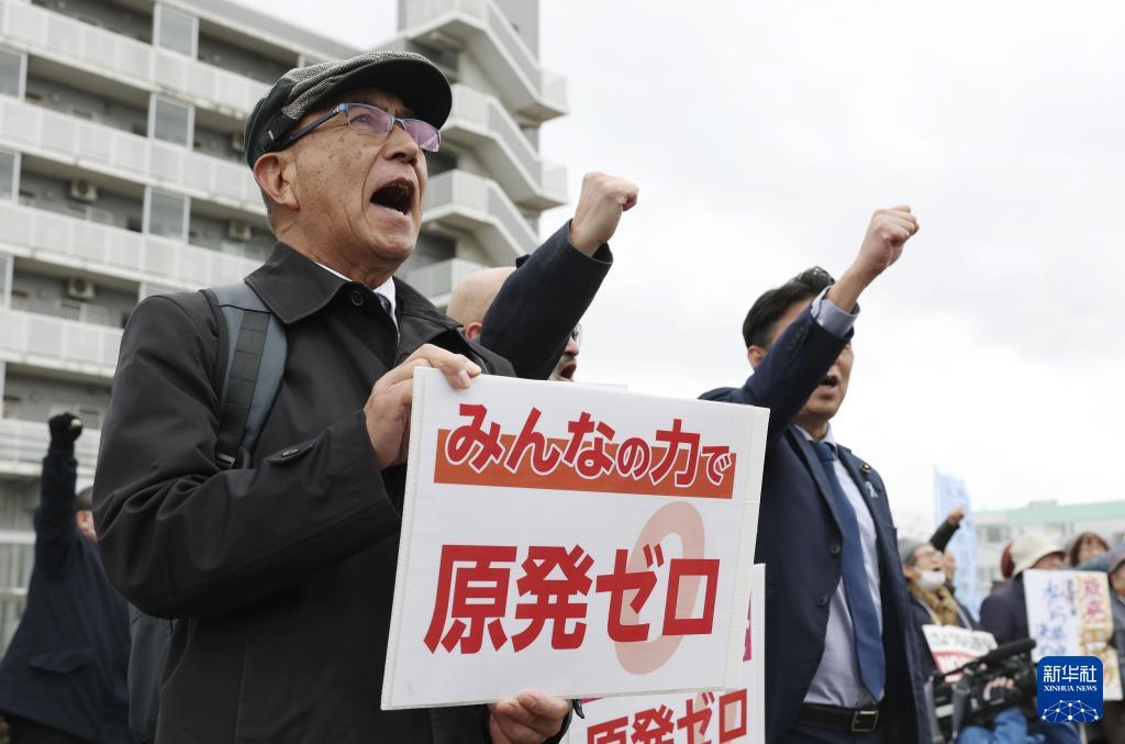 12月22日,民众在日本新潟县抗议重启柏崎刈羽核电站。新华社/共同社