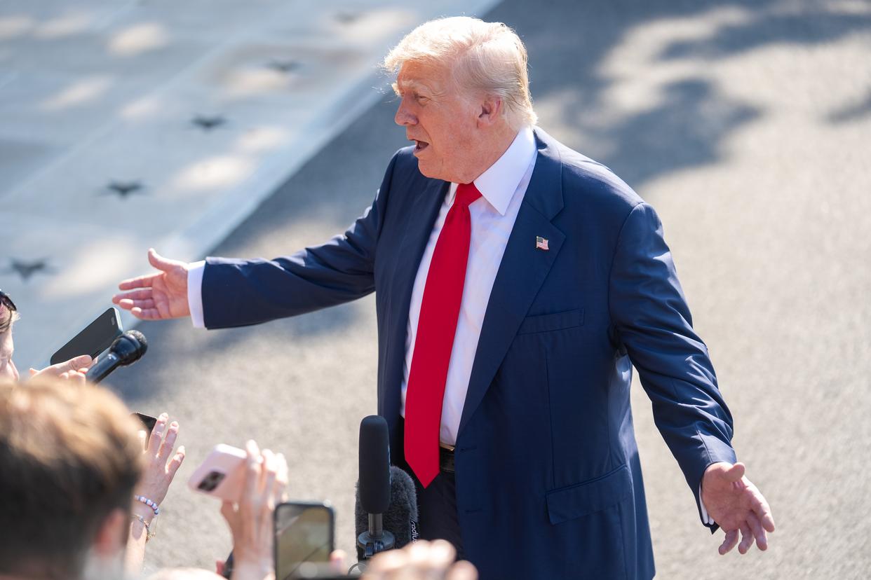 2025年7月25日,在美国首都华盛顿白宫,美国总统特朗普回答记者提问,再度否认与已故美国富商杰弗里·爱泼斯坦案存在关联,指责民主党人编造假消息。新华社记者胡友松摄文件涂黑引发愤怒
