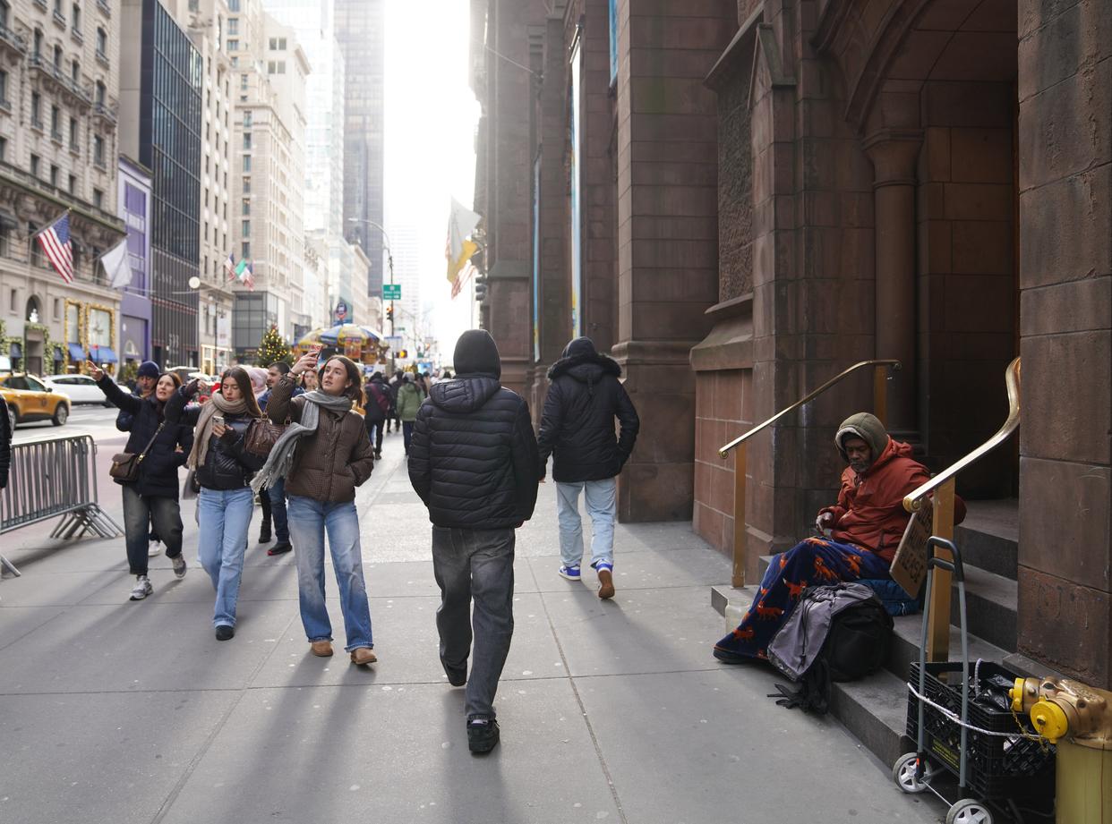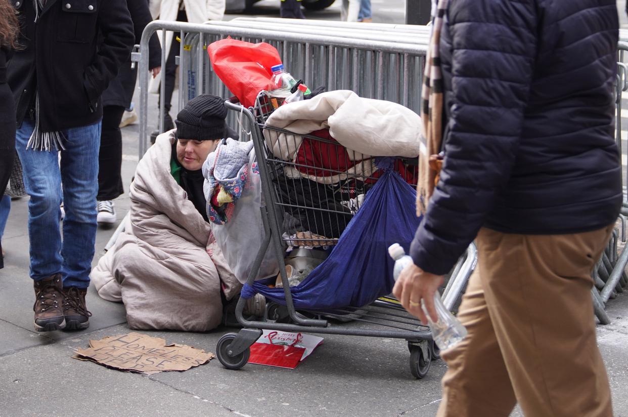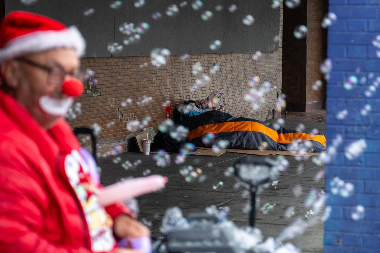 美国迎接新年之际,无家可归者的身影让热闹的节日气氛难掩一丝悲凉。