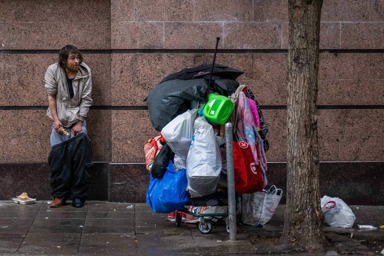 2025年12月31日,在美国加利福尼亚州旧金山,无家可归者露宿街头。新华社发(朱子于摄)