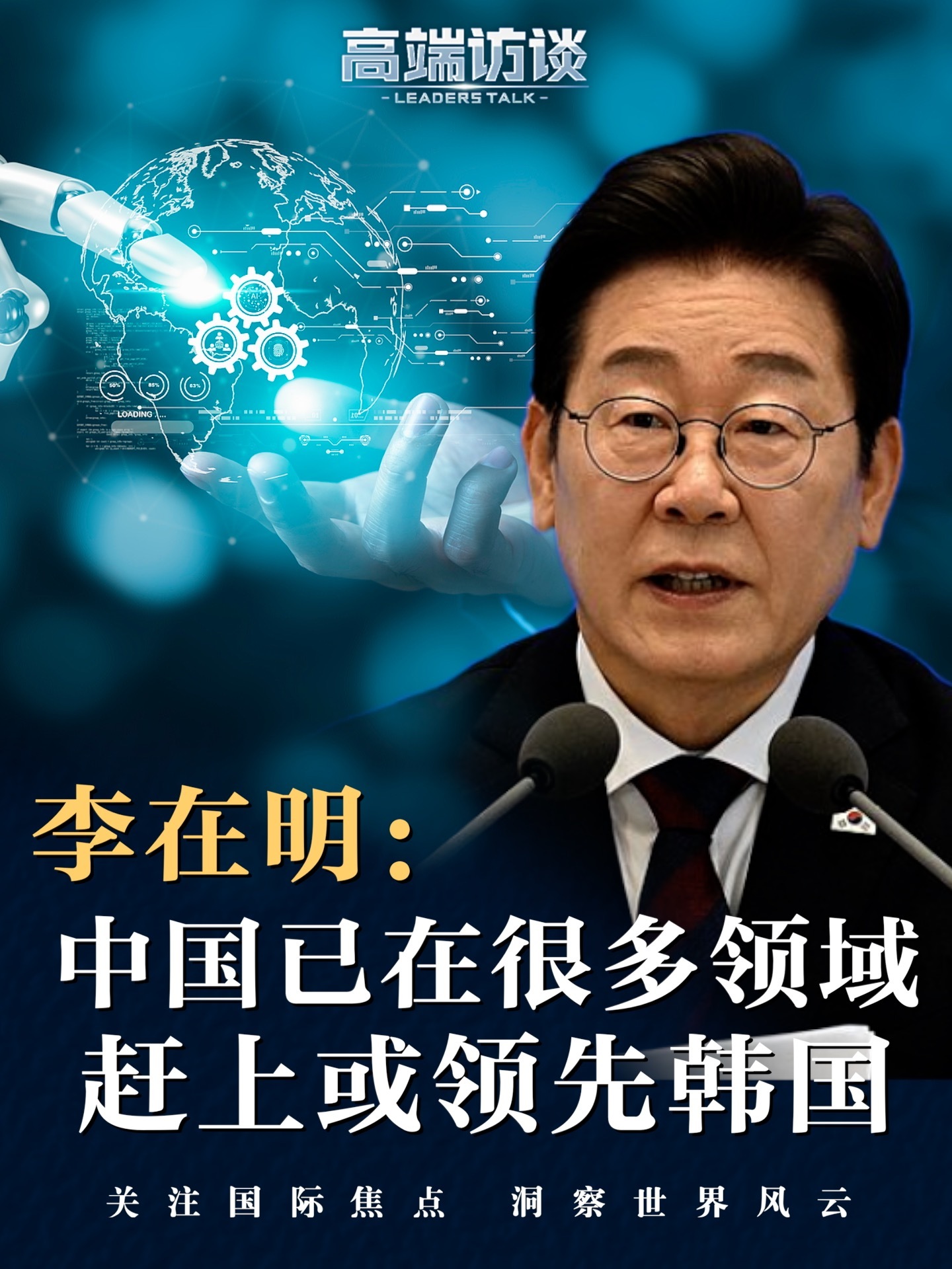 近日,韩国总统李在明接受总台《高端访谈》栏目专访。李在明表示,在技术和资本方面,中国已在很多领域赶上甚至领先于韩国。