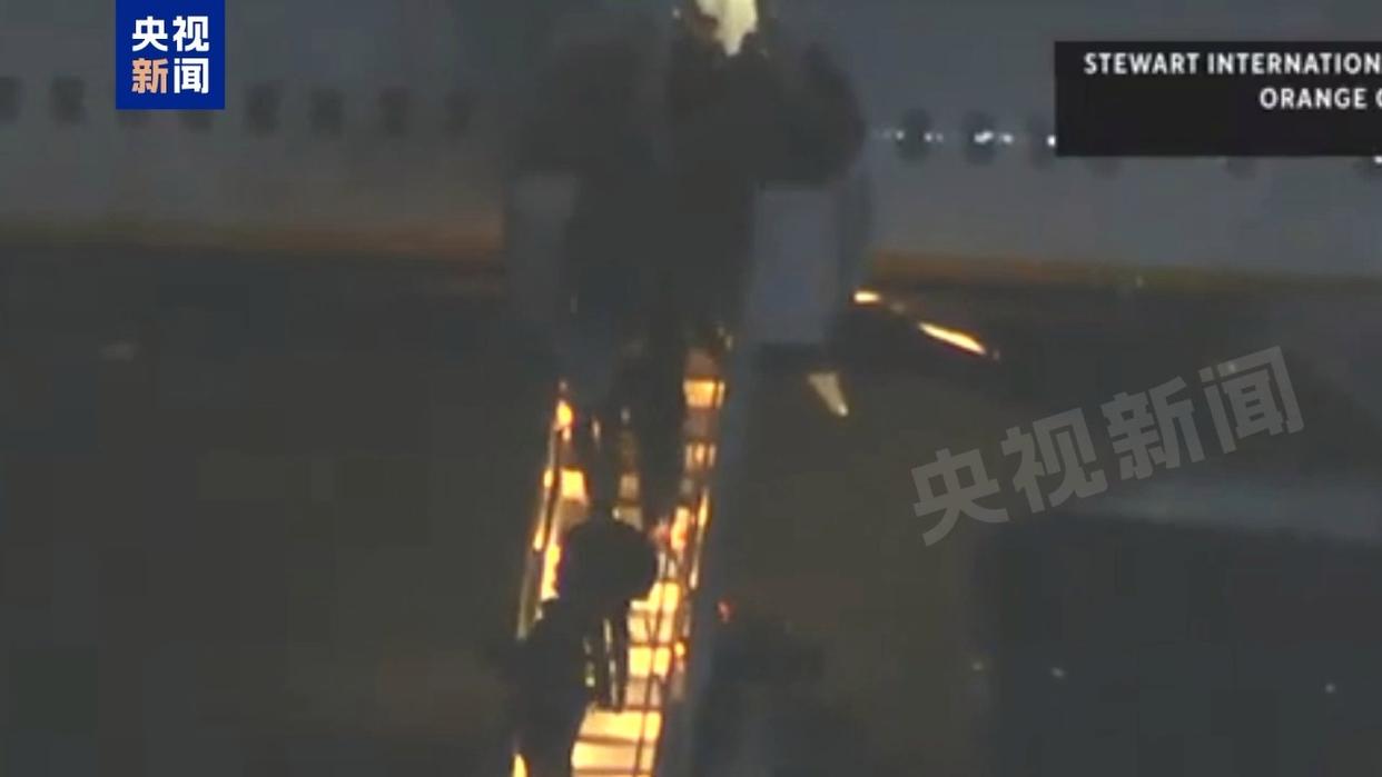 △当地时间1月3日晚,载有马杜罗的飞机抵达美国纽约一处军事基地,马杜罗正在走下舷梯。
