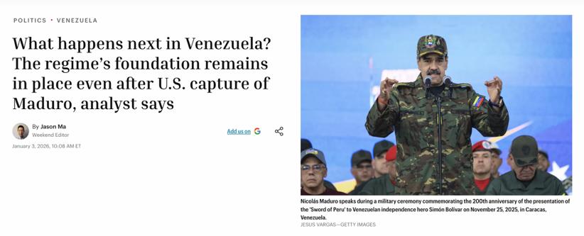 △《财富》杂志报道,即使美国抓捕了马杜罗,其政权根基仍在。