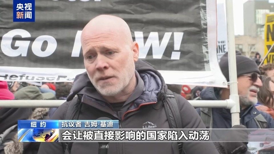 抗议者 吉姆·基迪:当这种帝国主义式的接管发生时,会让被直接影响的国家陷入动荡,还会对周边国家造成不稳定的外溢影响,有时甚至会导致内战,带来大量痛苦与灾难。