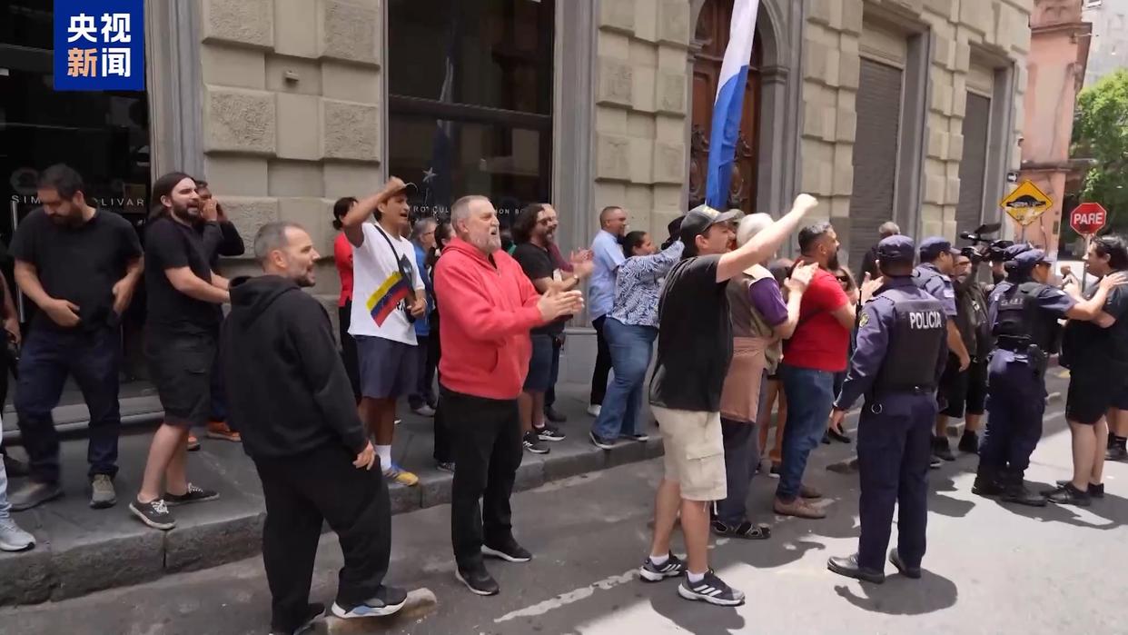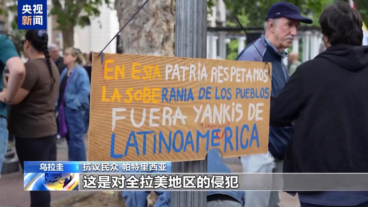 还有部分民众聚集在美国驻乌拉圭使馆前抗议,表达对美方侵略行动的愤慨。委内瑞拉驻乌拉圭领事佩德罗·萨索内呼吁维护委内瑞拉主权和独立。