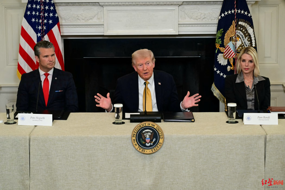 ▲美国国防部长赫格塞思、美国总统特朗普、美国司法部长邦迪(从左至右)