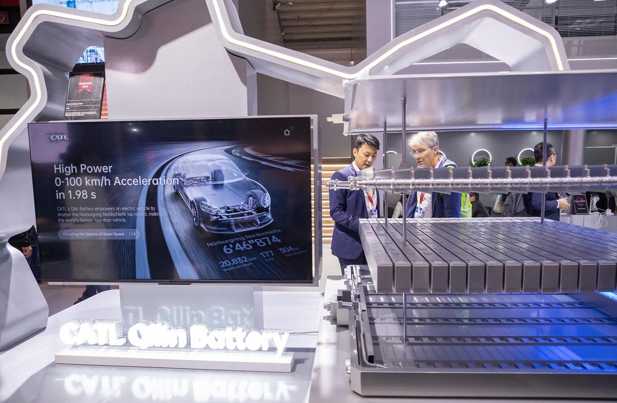 2025年9月10日,人们在德国慕尼黑国际车展的宁德时代展台洽谈。(张帆 摄) 成本与就业压力进一步放大了政策调整的紧迫性。能源价格长期处于高位,不仅推高车辆使用成本,也持续压缩企业利润空间。宝马、奔驰、大众等车企盈利能力普遍承压。数据显示,过去一年德国汽车行业净减岗位约5.15万个,成为受冲击最为集中的工业部门之一。