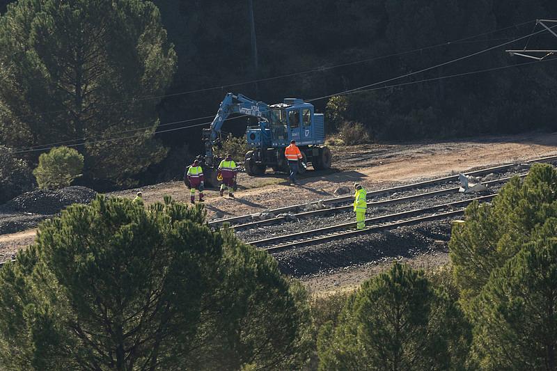 △当地时间1月20日,西班牙科尔多瓦亚达穆斯,工作人员查看火车轨道。1月18日,两列高速列车在此地相撞。