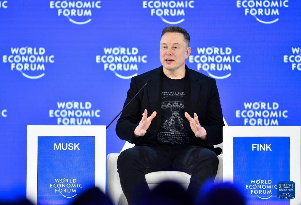 1月22日,美国企业家埃隆·马斯克在瑞士达沃斯举办的世界经济论坛2026年年会上发言。新华社记者 连漪 摄