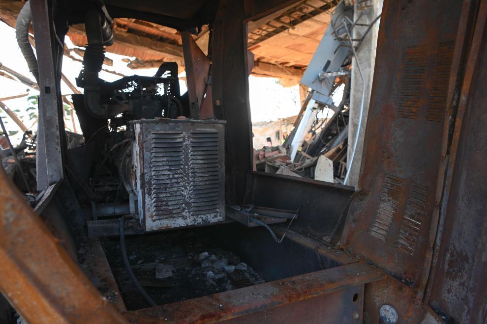 这是1月11日在委内瑞拉拉瓜伊拉港拍摄的美军空袭后的受损建筑。