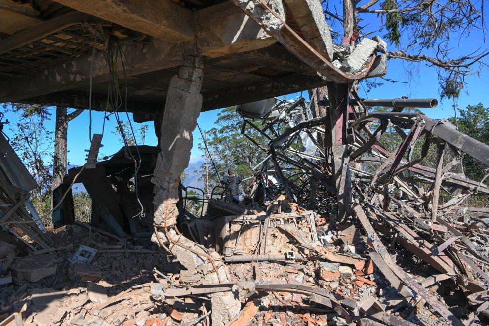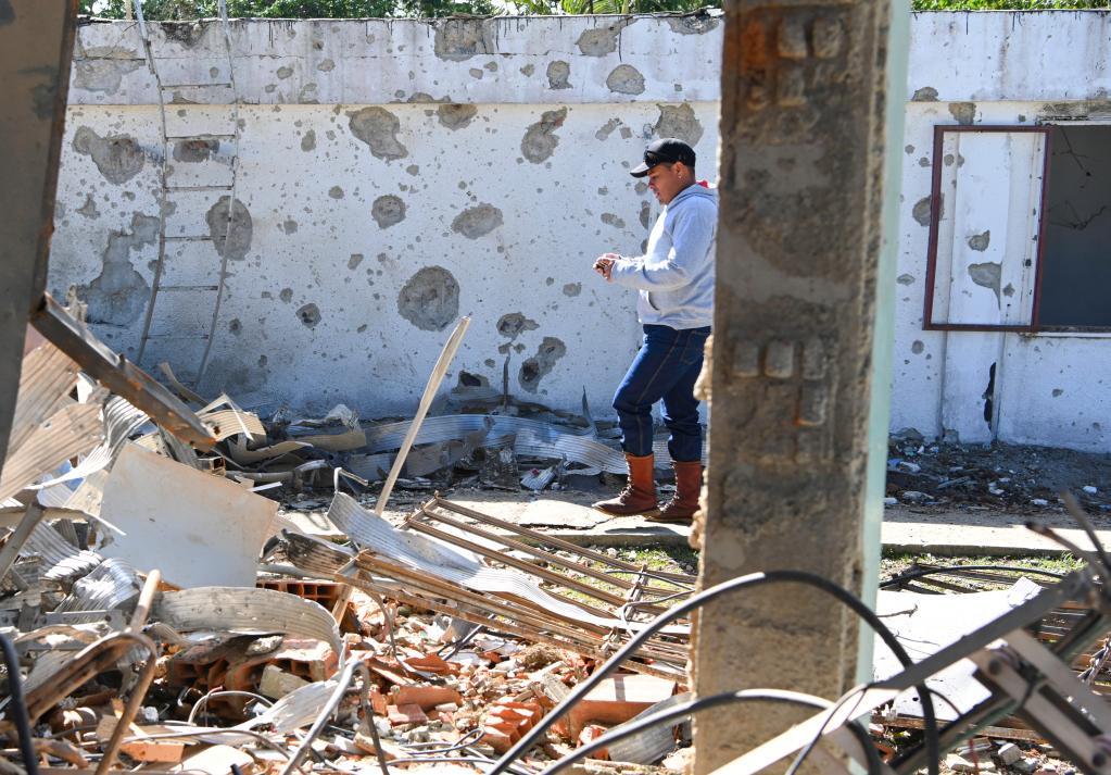 1月19日,在委内瑞拉米兰达州,一名委内瑞拉科学研究院工作人员在查看受损设施。
