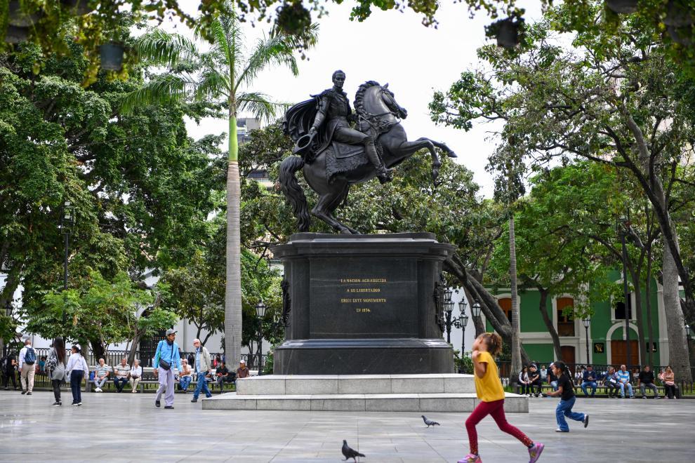 这是1月12日在委内瑞拉首都加拉加斯拍摄的玻利瓦尔广场。