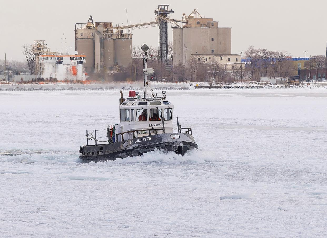 1月24日,在加拿大多伦多,一艘小船行驶在结冰的安大略湖上。新华社发(邹峥摄)