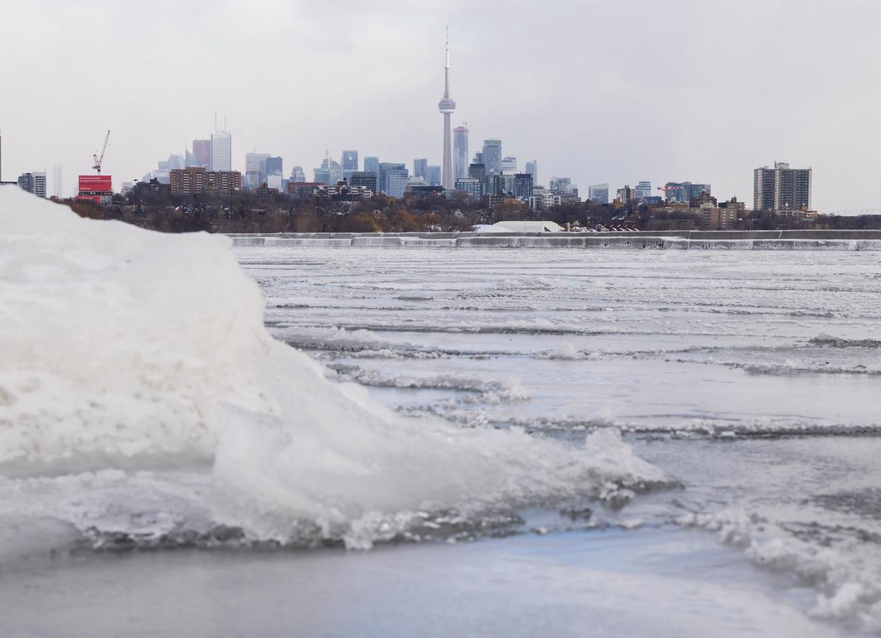 这是1月24日在加拿大多伦多拍摄的结冰的安大略湖。新华社发(邹峥摄)